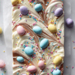 A festive and colorful chocolate bark made with creamy milk chocolate, swirled white chocolate, and crunchy candy-coated mini eggs. This no-bake treat is quick, easy, and perfect for sharing.