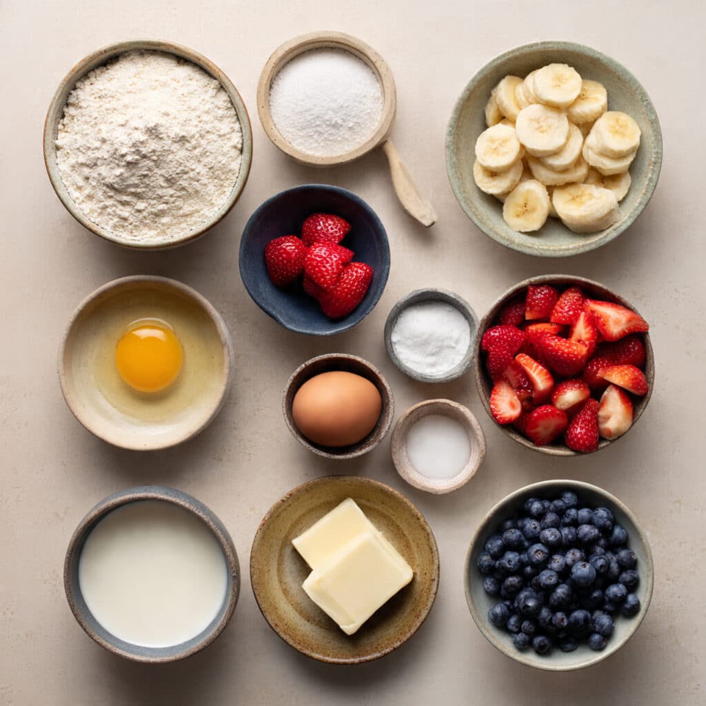 Ingredients You Will Need for Mini Pancake Fruit Skewers Breakfast