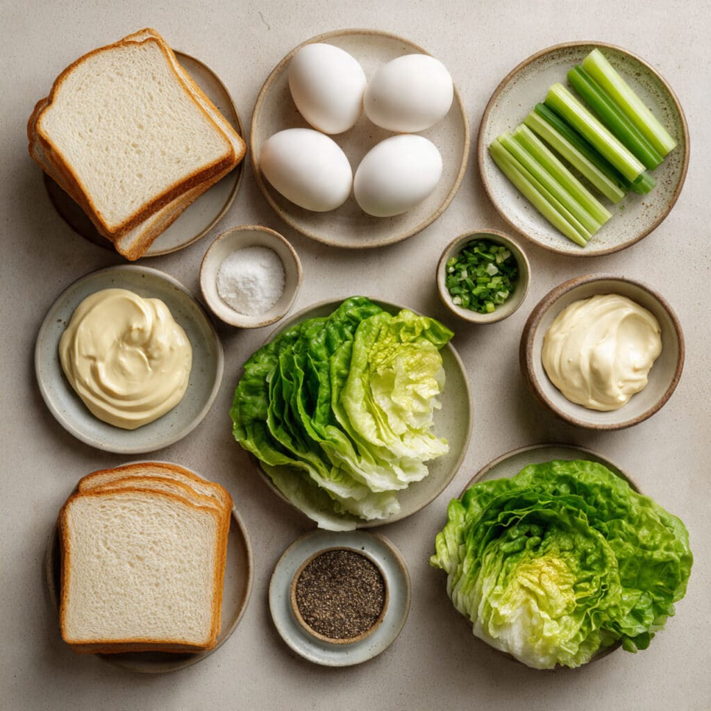 - Assemble the Dish: Place lettuce leaves on four slices of bread. Spread a generous layer of egg salad over the lettuce.