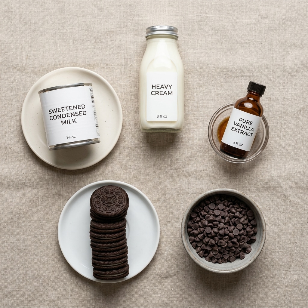 - Chocolate Sandwich Cookies or Soft Chocolate Cookies: 24 cookies, similar size for even layering.