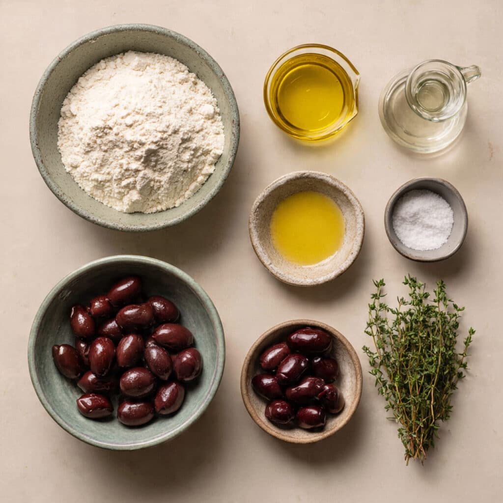 - Combine Ingredients: In a large bowl, mix warm water and yeast. Let sit for 5 minutes until slightly foamy. Stir in olive oil, salt, and flour until a soft dough forms. Fold in olives and thyme gently.