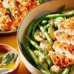 The moment you take a bite of this Parmesan Chicken & Green Bean Salad, you’ll feel that perfect balance between hearty comfort and garden freshness. Juicy, golden-crusted chicken mingles with crisp-tender green beans, sweet cherry tomatoes, and shavings of nutty Parmesan. It’s a recipe that dances between rustic and elegant — light enough for lunch, satisfying enough for dinner, and honestly, irresistible any time of day.