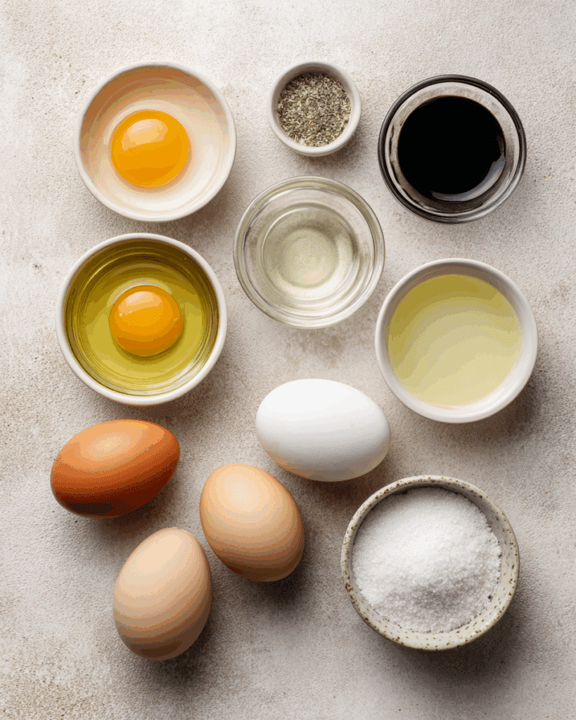 - White Vinegar: 1 tbsp – Helps the whites set quickly and keeps the egg shape intact.