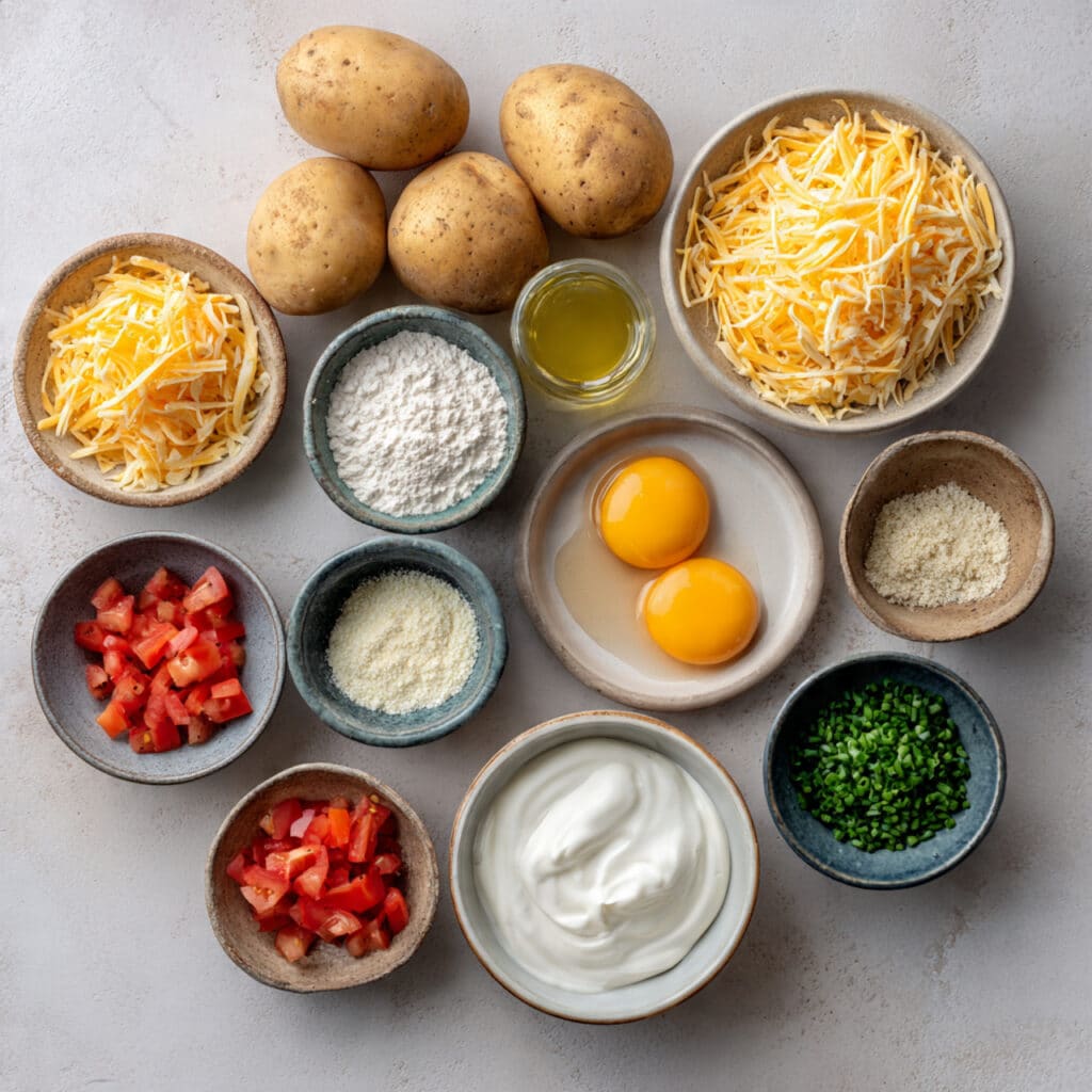 There is something incredibly comforting about turning simple potatoes and cheese into something golden, crisp, and irresistible. The first time I made this, the smell alone had everyone wandering into the kitchen asking what was cooking. Crispy edges, a soft cheesy center, and those fresh toppings melting slightly on the warm surface. Trust me, you’re going to love this. It is cozy, satisfying, and surprisingly easy.