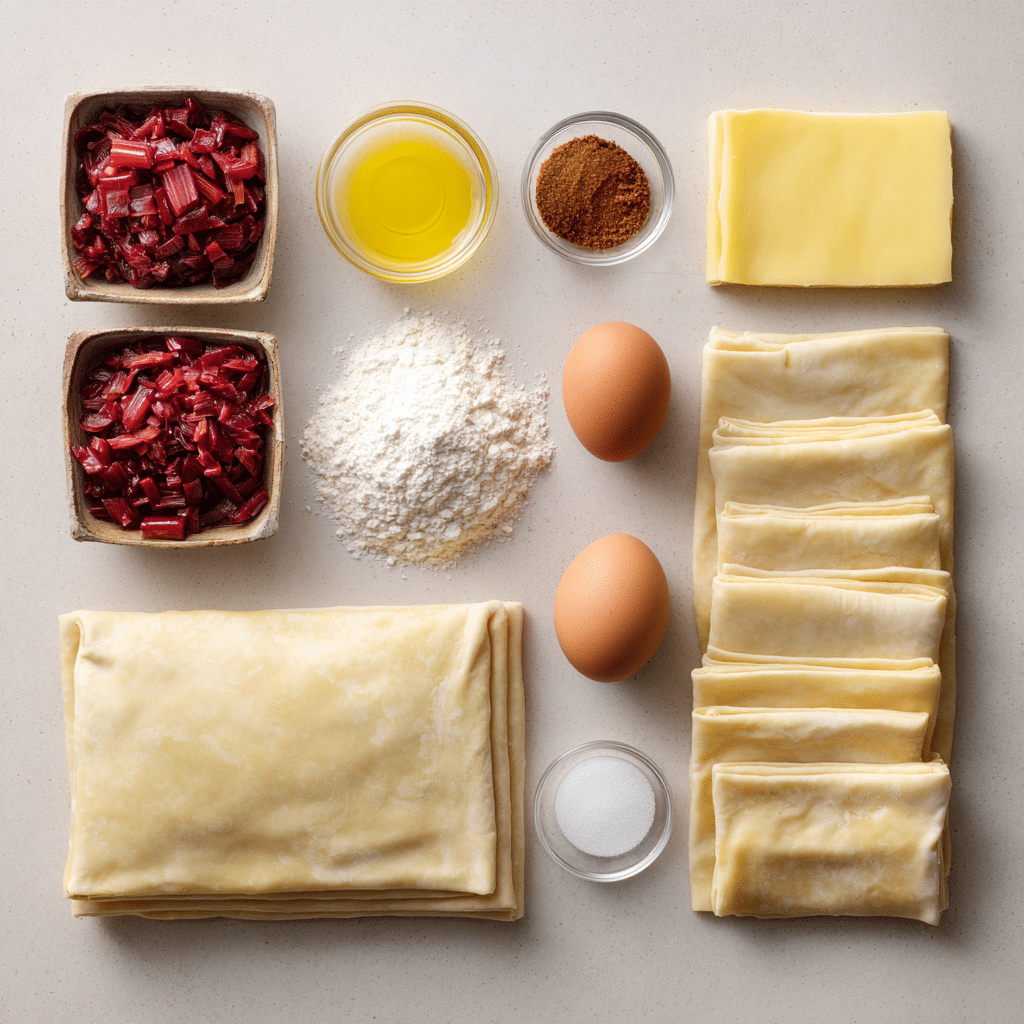 These ingredients create the perfect balance of flaky and sweet, with a tangy twist from the rhubarb.