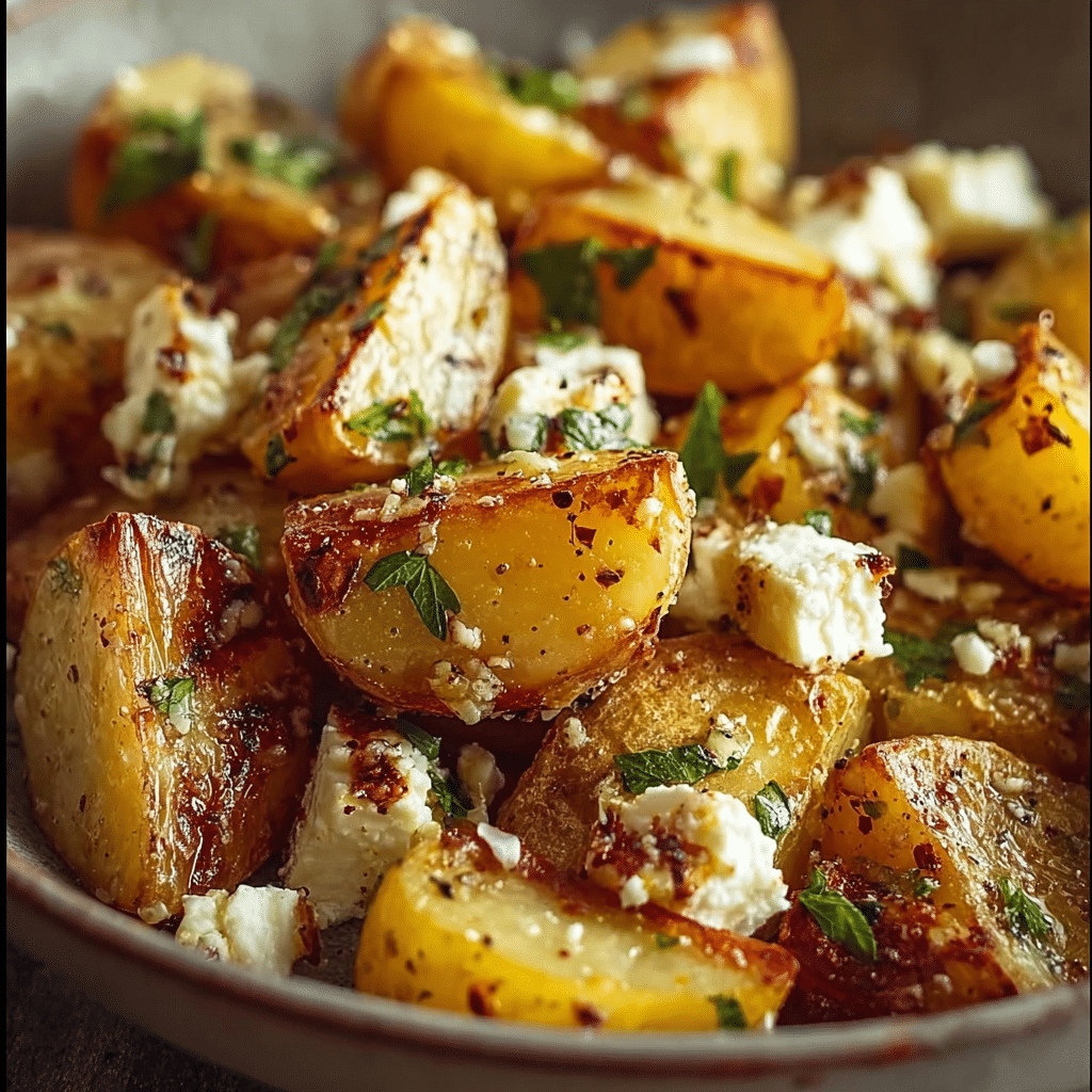 This dish was born from the desire to create a side that’s both easy to prepare and packed with flavor. Roasted potatoes are a classic, but adding the feta and garlic elevates it to something extraordinary. The feta bakes until it becomes soft and slightly caramelized, infusing the potatoes with its rich, tangy flavor. Garlic, of course, brings that unmistakable savory depth that makes this dish so irresistible.