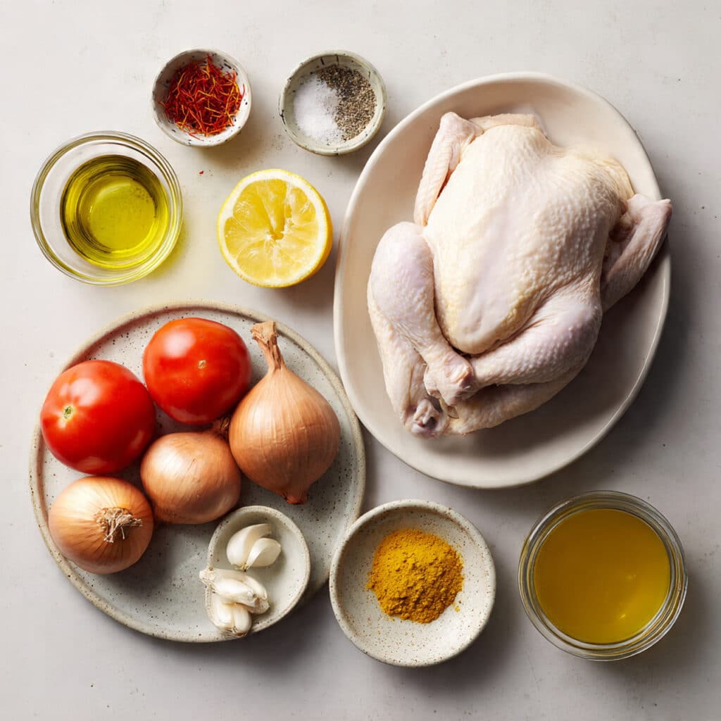 - Whole Chicken: About 3.5 to 4 pounds, cleaned and patted dry. It’s the heart of the dish and soaks up the saffron beautifully.
