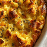 This recipe came to life one rainy afternoon when I opened the fridge and found half a loaf of day-old bread, some stray cheese slices, and a few odds and ends that were begging to be used. Instead of tossing them, I remembered the sweet version of bread pudding I used to make with my grandmother, and thought why not go savory? What followed was a bubbling, cheesy, herby creation that quickly became a family favorite.