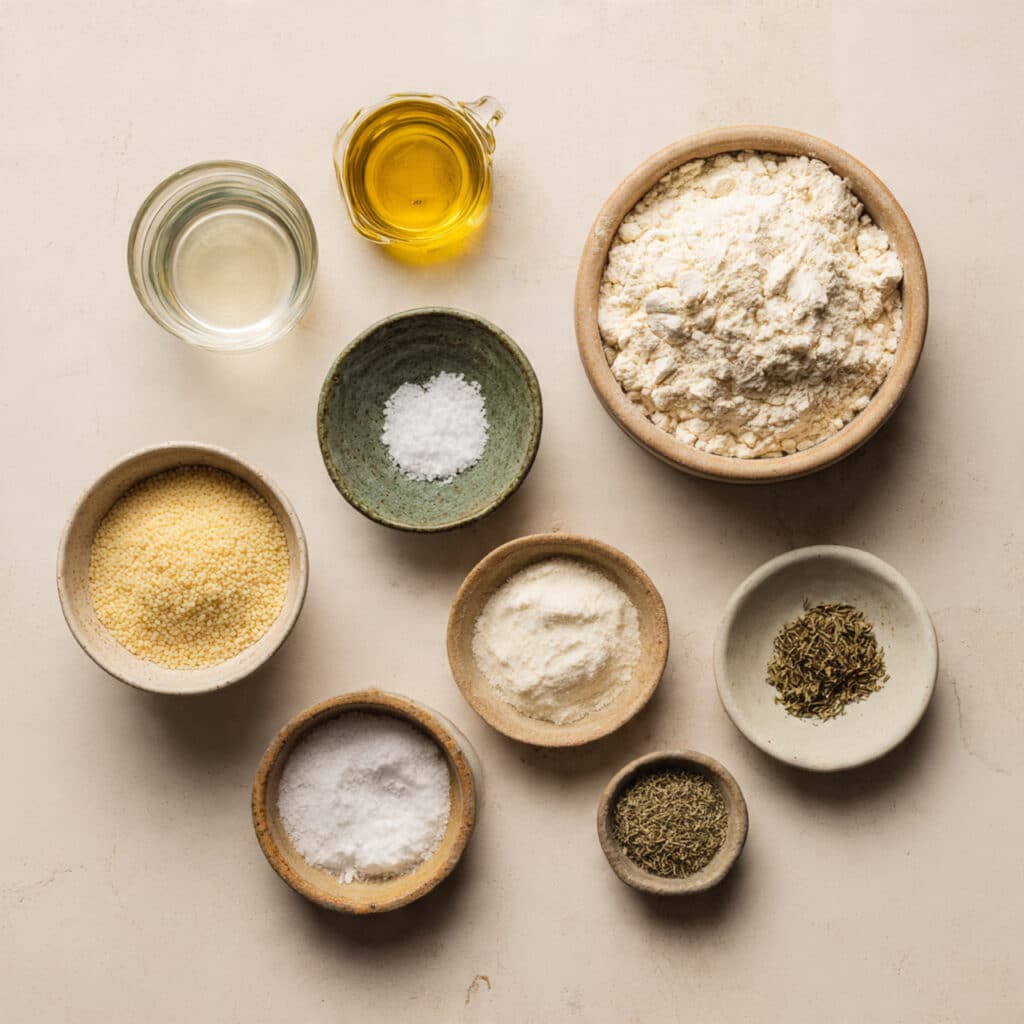 - Combine Ingredients: In a bowl, mix millet flour, salt, garlic powder, and herbs, then stir in warm water and olive oil until a soft dough forms.