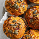 Warm, fluffy, and savory sweet potato muffins filled with cheddar, green onions, and a crunchy seed topping. Perfect for breakfast, snacking, or pairing with soup.