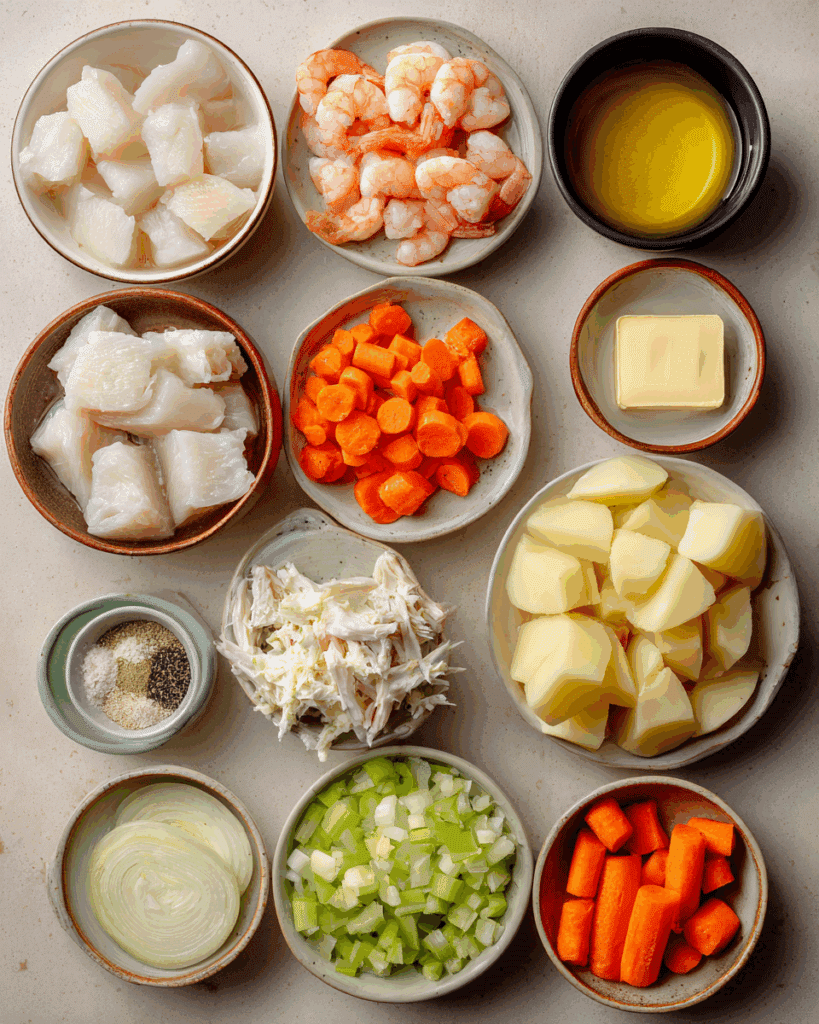 It all started on a blustery evening when I craved something soothing yet a little indulgent. I had a bag of mixed seafood in the freezer and a pile of potatoes on hand. I wanted the familiarity of chowder—the creamy warmth, the gentle chunkiness—but with a more generous seafood twist. So I pulled out my favourite heavy‑bottomed pot, sautéed aromatics until fragrant, simmered potatoes just right, then added seafood and cream for that final flourish. The result? A bowl full of layers: mild fish, sweet shrimp, soft potato, and a broth that tastes like the sea and home at once.