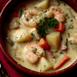 This creamy, hearty soup brings the ocean’s bounty into a single bowl. Imagine tender chunks of white fish, plump shrimp, soft potatoes, and maybe even scallops or clams, all nestled in a rich, velvety broth. This is comfort in a spoon—perfect for a chill evening when you want something warm, satisfying, and a bit luxurious.