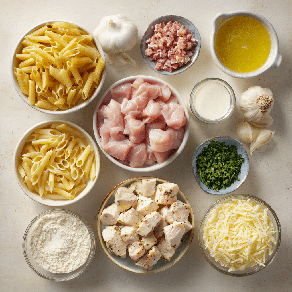 - Combine Ingredients: Cook pasta until al dente, drain, and set aside. Sear chicken in skillet until golden.