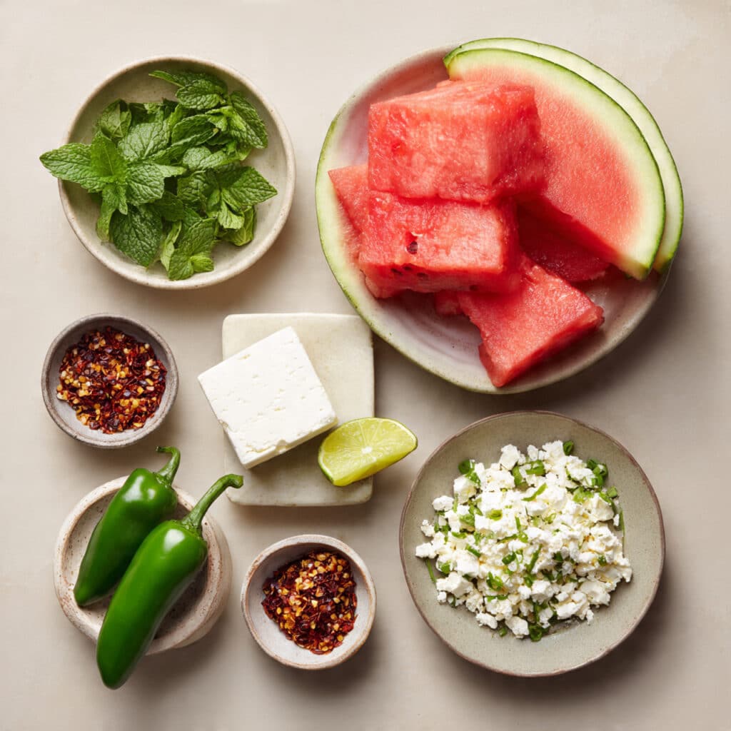 Every spoonful delivers contrast. The watermelon is crisp and juicy, the feta is creamy and slightly crumbly, and the jalapeño adds a subtle heat that builds slowly. The lime juice ties everything together with a bright finish.