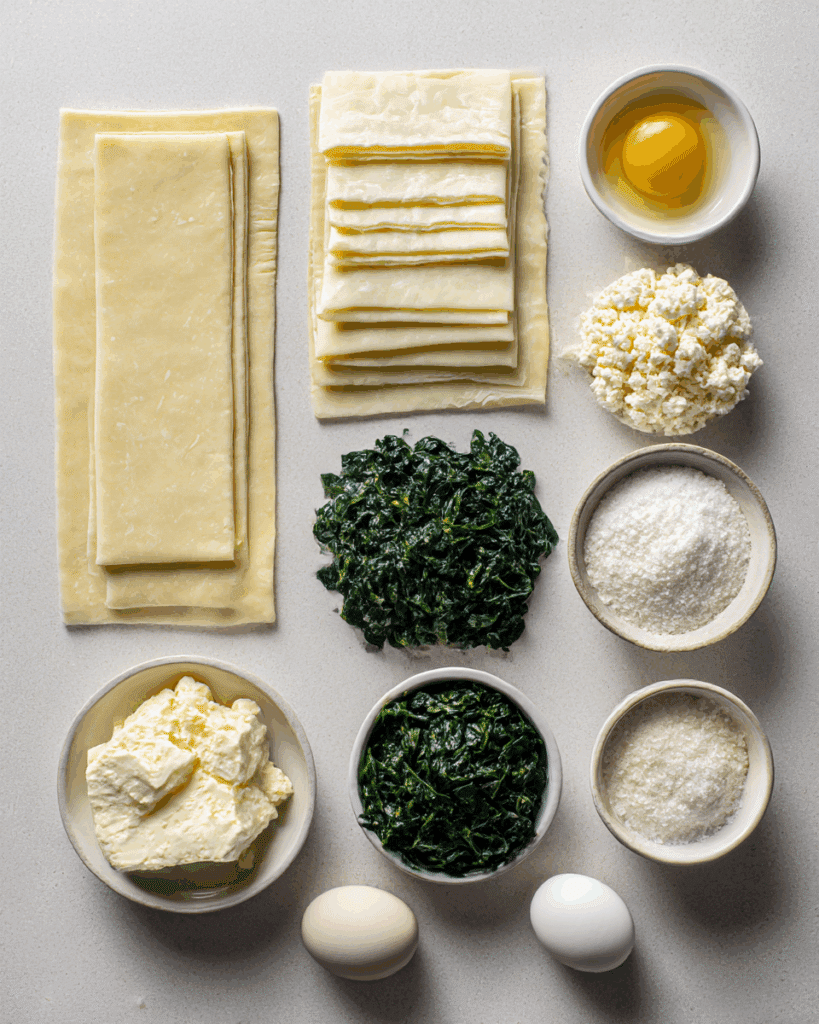 Feta Cheese: With its briny, tangy flavor, feta brings bold character to the filling and balances beautifully against the buttery pastry.