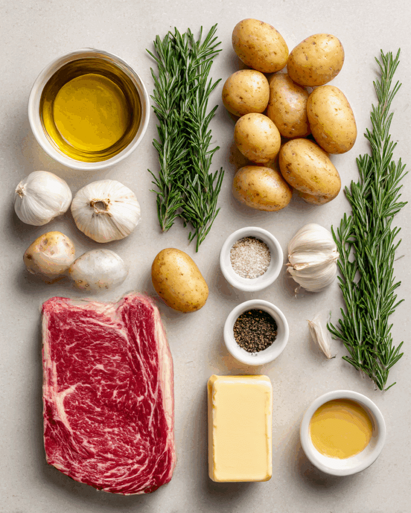 - Garlic Cloves: 4, minced. Adds depth to both steak and potatoes.