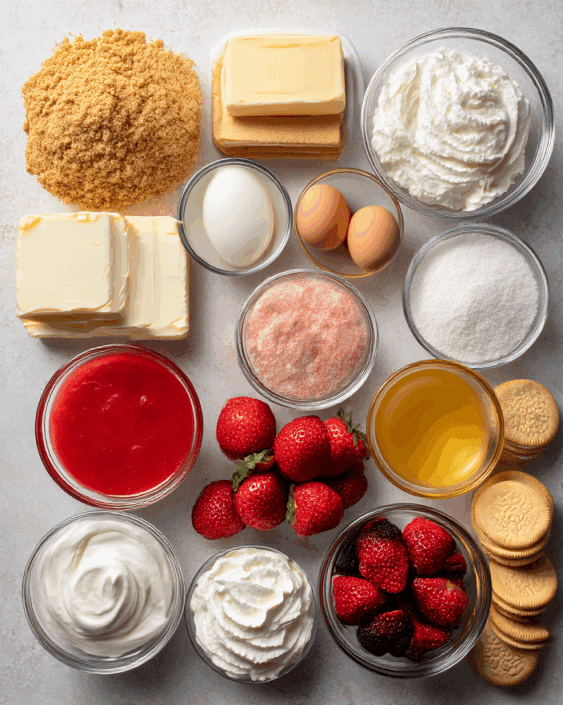 It all started with a craving for something nostalgic. I was thinking about those strawberry shortcake ice cream bars from the ice cream truck—the ones with the pink and golden crunchy coating. I wanted to recreate that texture and flavor but pair it with the creaminess of a baked cheesecake. A few experiments later, the Strawberry Crunch Cheesecake was born. It’s now my go-to for birthdays, holidays, and any day that needs a little bit of strawberry sparkle.
