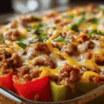What makes this dish so special? The contrast of textures — tender beef, juicy peppers, fluffy rice, and that gooey, melty cheese on top. Each bite is rich with tomatoey warmth, softened sweetness from the peppers, and satisfying savoriness from the beef and herbs.