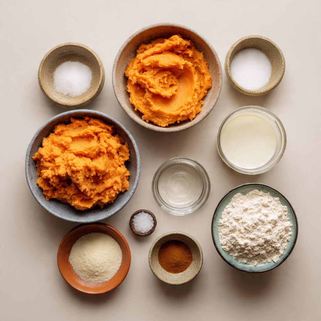 Sweet Potatoes: Naturally sweet and creamy, they form the heart of this recipe and give the dumplings their signature color and flavor.