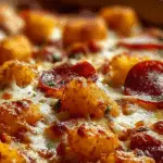 Imagine pulling a bubbling dish from the oven, where layers of gooey cheese, tangy pizza sauce, and crispy golden tater tots come together in one irresistible bite. The edges sizzle, the cheese stretches, and the aroma of oregano, garlic, and melted mozzarella fills the kitchen. Trust me, this Tater Tot Pizza Casserole is the kind of comfort food that makes the whole table gather fast — and now, let’s dive into the story behind this fun, family-friendly favorite.