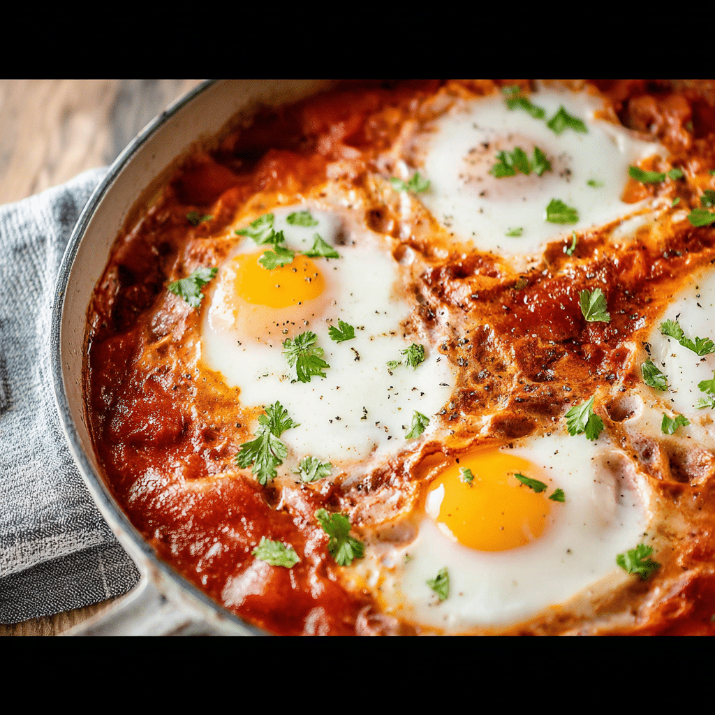 Shakshuka sauce can be prepared a day ahead, then reheated and finished with fresh eggs. Leftovers store well in the fridge for up to 3 days. For best results, reheat the sauce gently and add freshly cooked eggs before serving.