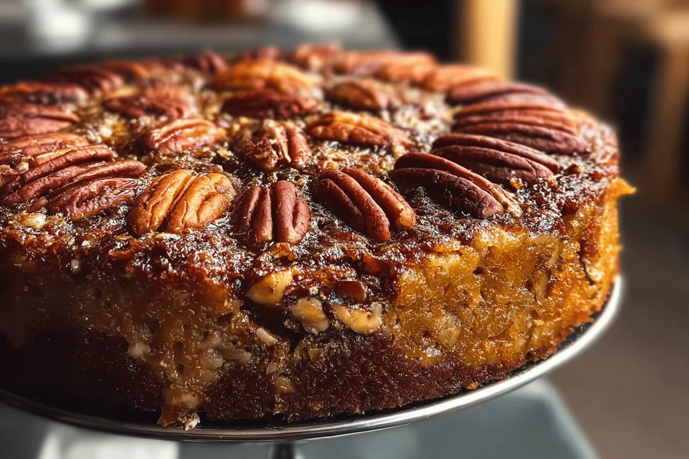Upside-Down Georgia Pecan Cake is a Southern-inspired dessert featuring caramelized pecans baked into a buttery, tender cake. Warm, nutty, and perfectly sweet, it’s ideal for gatherings and holidays.