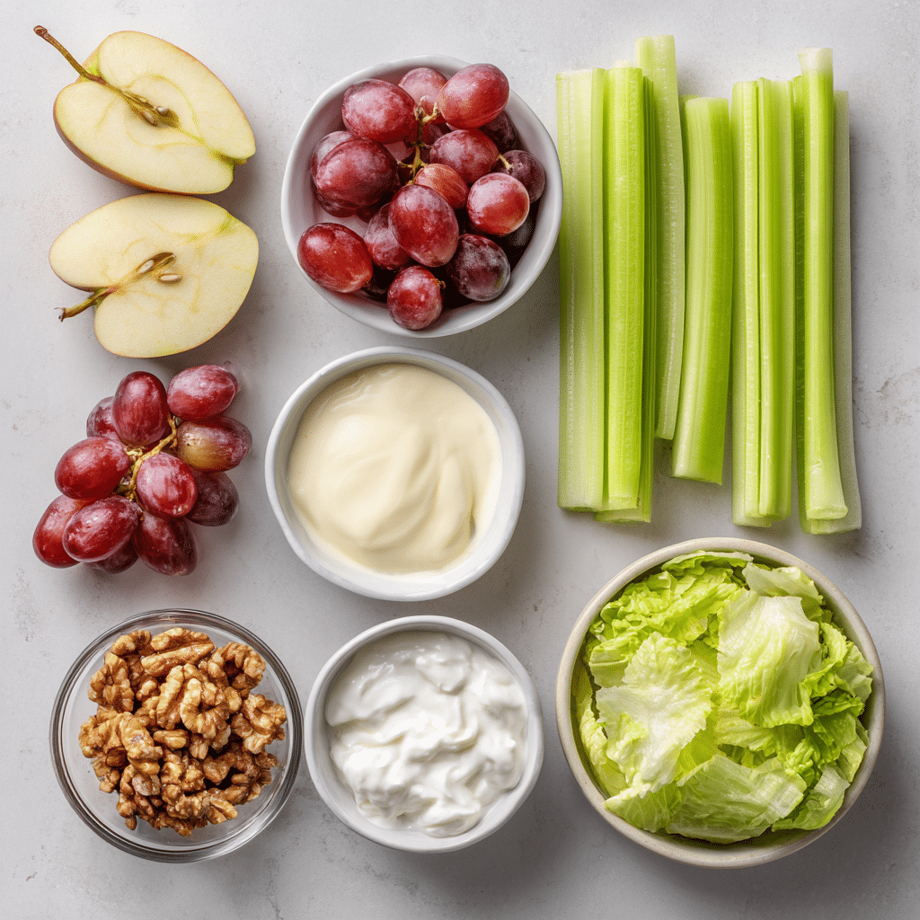 A timeless classic, this Waldorf Salad combines crisp apples, celery, grapes, and toasted walnuts with a creamy, tangy dressing. Light, fresh, and perfect for any occasion.