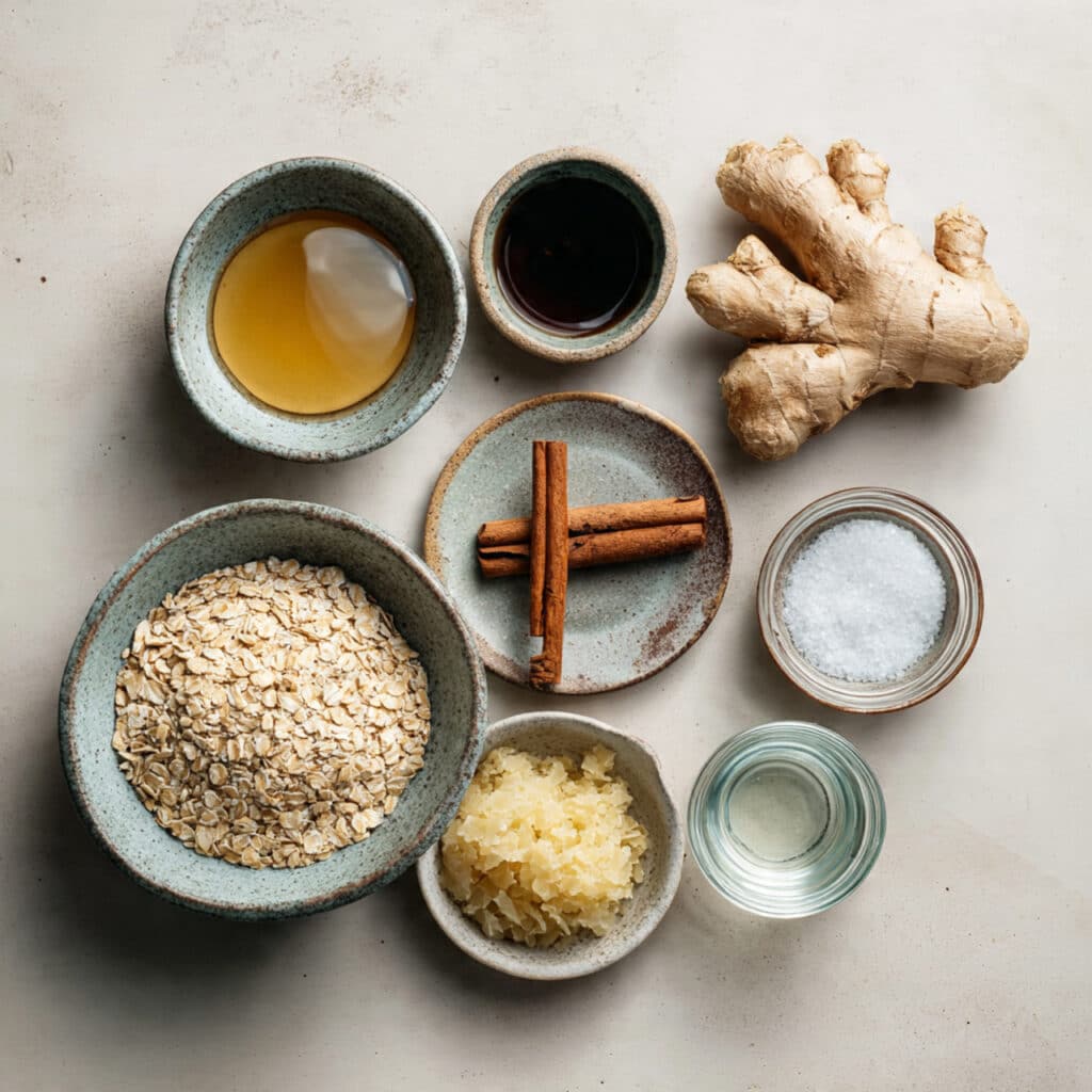 A cozy, creamy blend of oats and fresh ginger, gently simmered with cinnamon and vanilla for a warm, soothing drink perfect for any time of day.