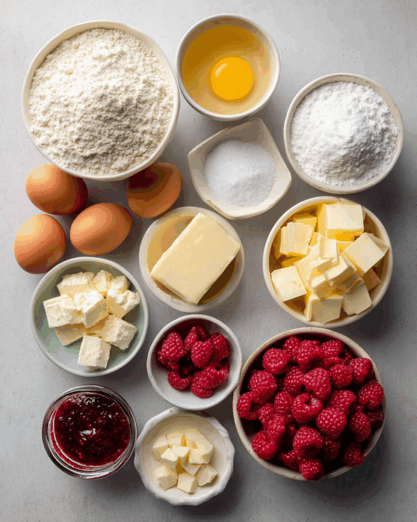 - Raspberry Jam or Preserves: ½ cup. Creates a sweet, fruity filling between layers.