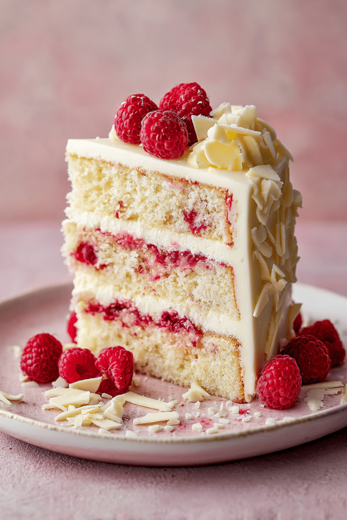 Serve slices on a dessert platter topped with extra raspberries or white chocolate curls. Pair with a glass of sparkling water, vanilla tea, or a light espresso. It makes a stunning centerpiece for birthdays, bridal showers, or just a beautiful weekend bake.
