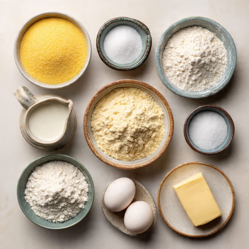 - Yellow Cornmeal: 1 cup – Brings that signature corn flavor and texture.