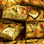 - Grate and squeeze your zucchini to remove excess moisture — this keeps the slab from being soggy.